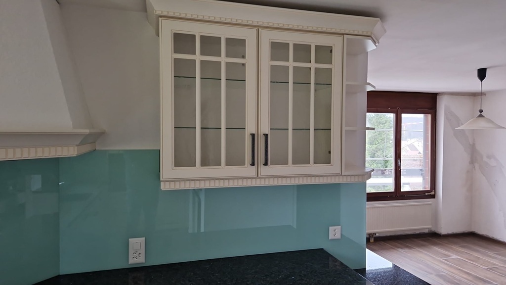 Bei dieser Sanierung mit Festpreis wurde die Wand zur Küche entfernt und ein Träger eingebaut. So entstand ein großer heller Wohn-/ Ess-/ Küchenbereich.