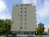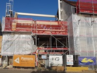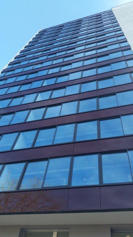 Die Gebäudehülle wurde mit einer Glasfront versehen. Mithilfe eines Hubschraubers wurde in Holzbauweise aufgestockt und dadurch 2 Attikawohnung geschaffen. Alle 66 Wohnungen wurden saniert und mit neuen Küchen ausgestattet.