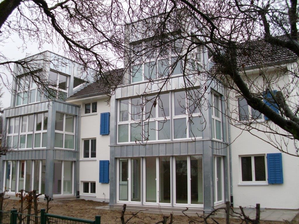 Mineralische Fassadensanierung (Minergiehaus). Architektur & Baumangement Kusserow hat alle 29 Wohnungen renoviert. Inklusive Böden, Bäder, Wände, neue Fenster sowie Küchen.