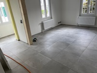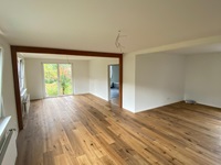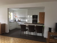 Bei dieser Sanierung mit Festpreis wurde die Wand zur Küche entfernt und ein Träger eingebaut. So entstand ein großer heller Wohn-/ Ess-/ Küchenbereich.